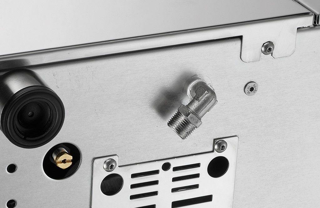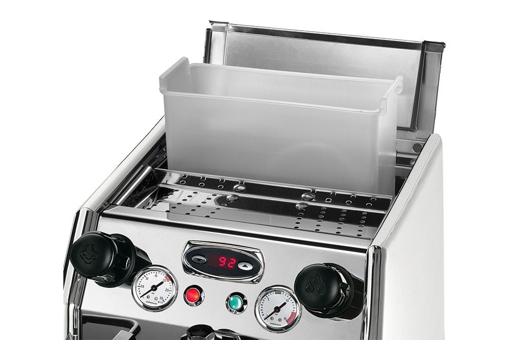A button under the quick-release tank switches from mains water to tank water.